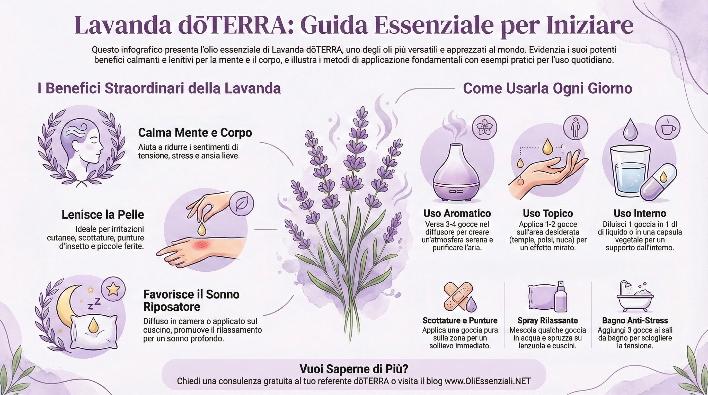 In questa guida esploreremo perché la Lavanda dōTERRA è unica, come agisce chimicamente sul tuo corpo e come utilizzarla in ogni aspetto della tua vita quotidiana.