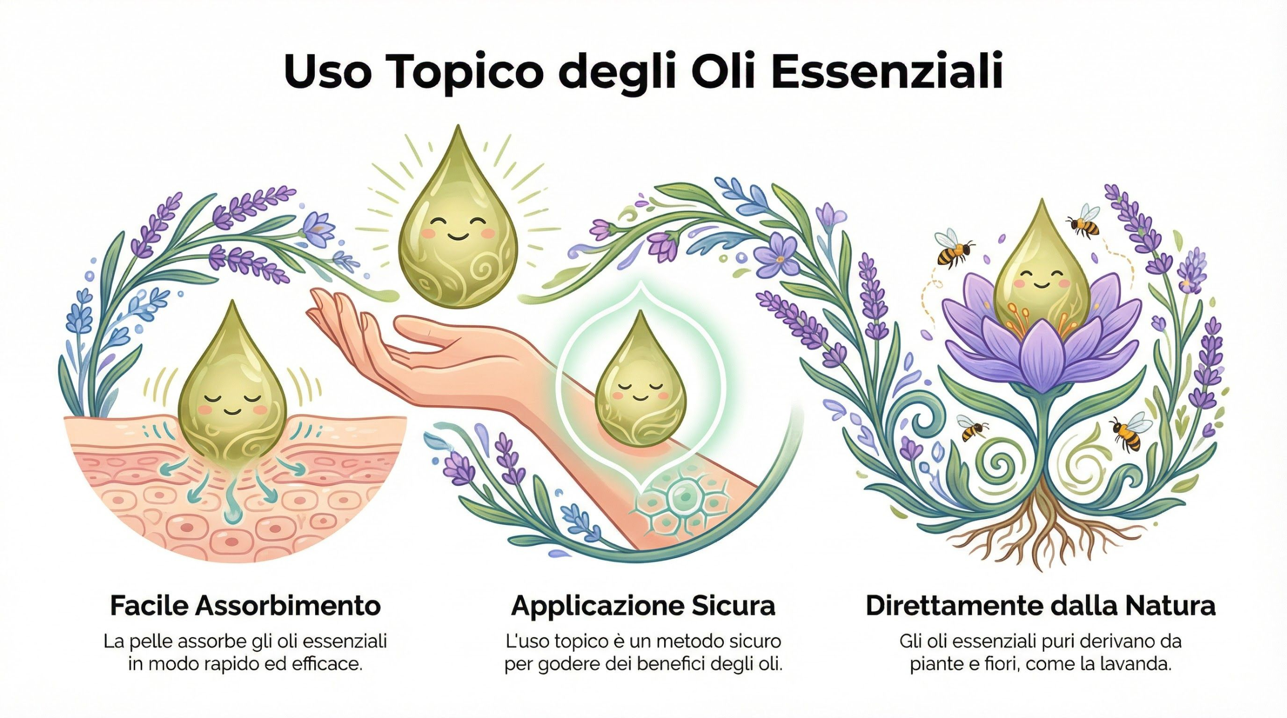 Gli Oli Essenziali vengono facilmente assorbiti dalla pelle e possono essere applicati topicamente in modo sicuro.